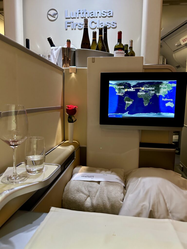 - Seat: 1G (Lufthansa First Class, 1-2-1 configuration)