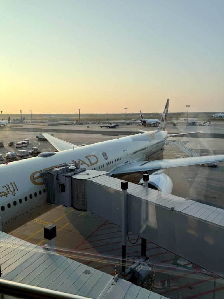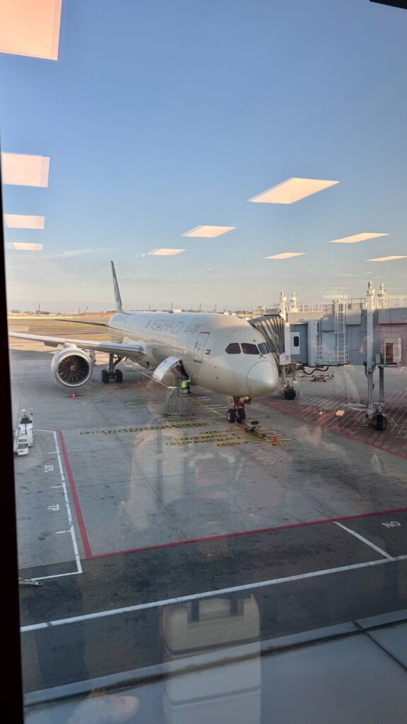 We used the Priority Pass lounge — the only non-Etihad option in Abu Dhabi — which was not impressive. The transfer itself was seamless: security fast, terminal quiet. The emptiness is partly a function of current regional disruption rather than a permanent feature, so it’s not a fair benchmark. Under normal circumstances, AUH is a clean, functional airport for a transit — not a destination in itself, and less interesting as a stopover than Doha, but efficient.
