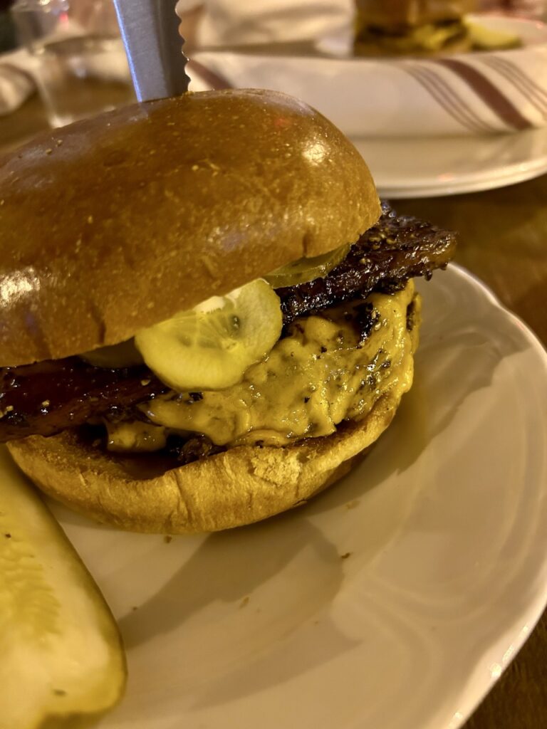 Au Cheval: This isn’t just a diner; it’s a pilgrimage site for burger lovers. The dimly lit, hip atmosphere sets the stage for what is, without exaggeration, one of the best burgers we’ve ever had. We ordered the double cheeseburger, which comes with three patties (a single has two), sharp American cheese, dijonnaise, and pickles, and we added the thick-cut peppered bacon. Be prepared to wait—we waited two hours, which we used to explore the West Loop. The reward is a perfectly seared, incredibly juicy burger that is worth every single minute of the wait.