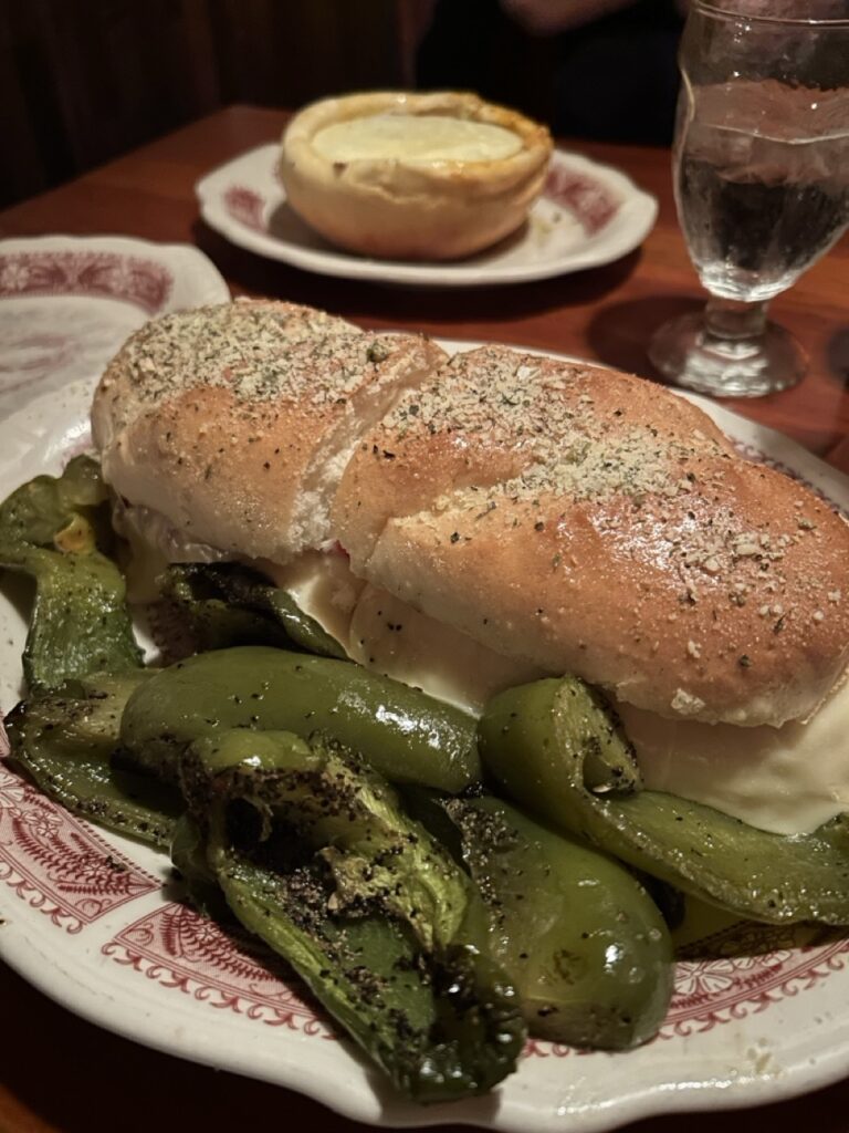 Pizza and Oven Grinder Co.: My favorite meal in Chicago, hands down. Tucked away in a historic brownstone in Lincoln Park, this cash-only spot is famous for one thing: the Pizza Pot Pie. They build the pizza upside down in a ceramic bowl—piled with cheese, homemade sausage, and mushrooms—cover it with dough, and bake it. The server flips it at your table, revealing a glorious, gooey, and utterly delicious creation. It’s pure, unforgettable comfort food. 10/10, would go back in a heartbeat.