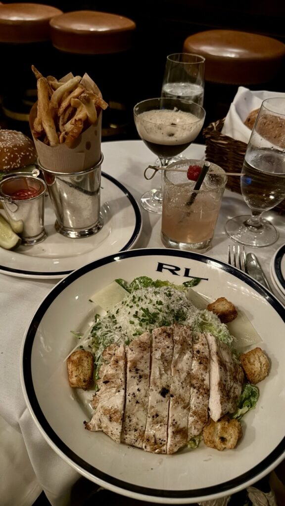 RL Restaurant: The restaurant counterpart to the coffee shop is just as stylish. We sat at the bar, enjoying fantastic cocktails and a delicious dinner in the sophisticated, buzzy atmosphere. The food and cocktails were both amazing.