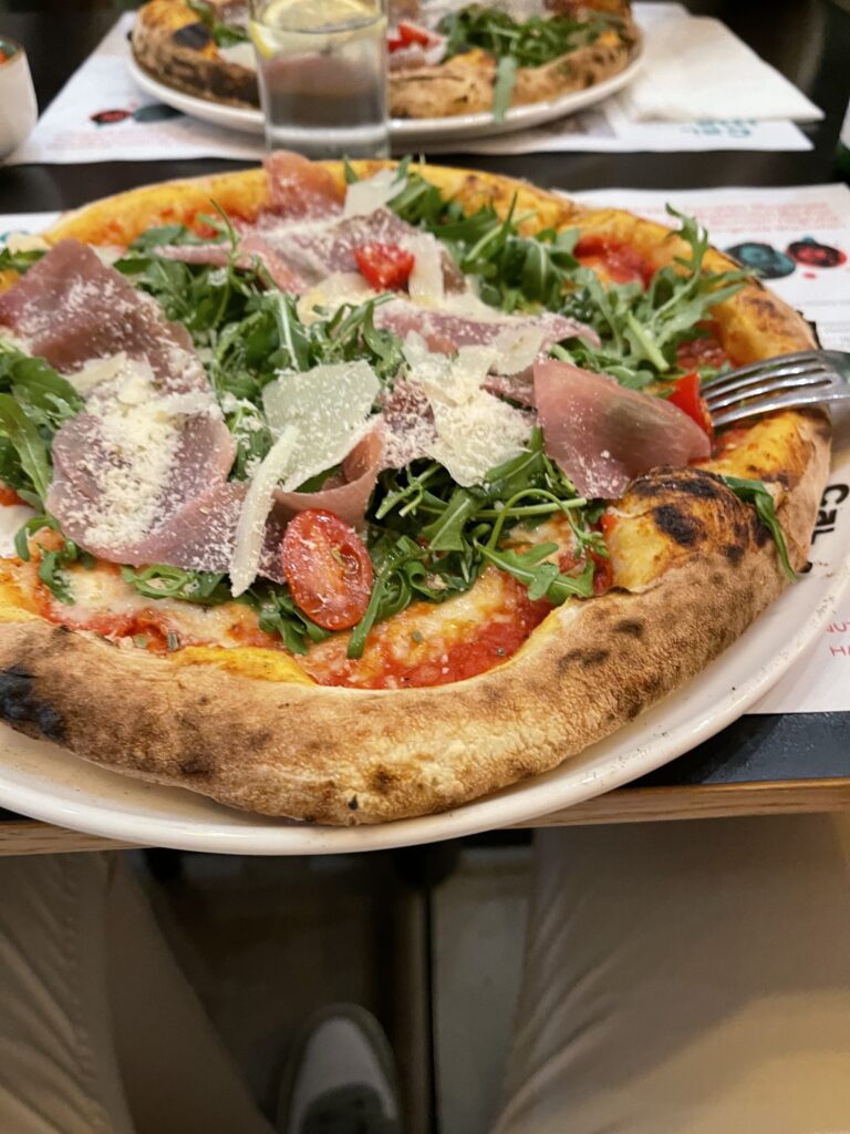If you’re in the Bahnhofsviertel but looking for a slightly more relaxed atmosphere than the typical quick-bite spots, Calma Chaos is an excellent choice. It’s a bit more of a stylish restaurant where you can comfortably sit down and enjoy a nice glass of wine with your meal. While their pizza is great, they also offer a selection of very good pasta dishes, making it the perfect compromise if you’re dining with someone who isn’t in the mood for pizza.