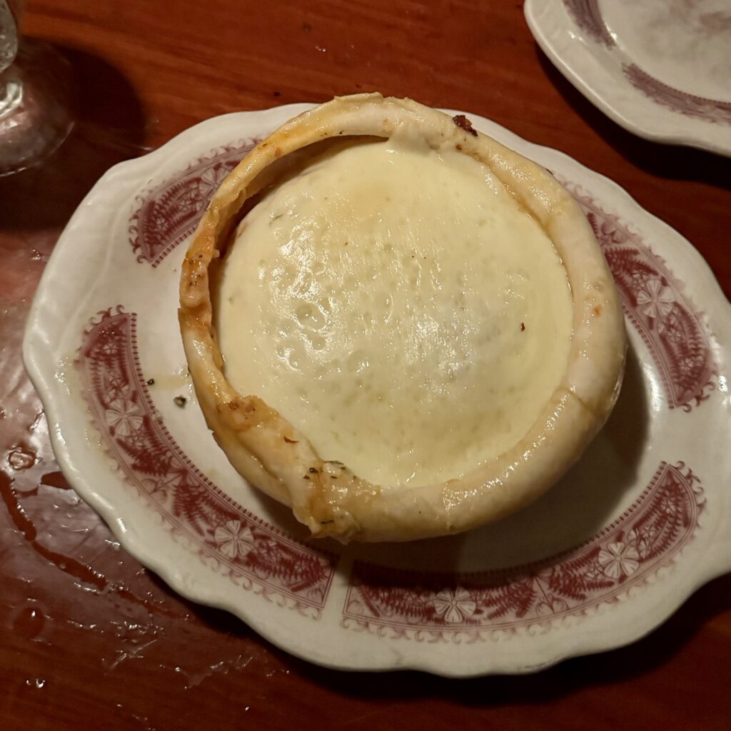 This is the legendary dish that the restaurant is famous for. It arrives at your table looking like a simple bowl of baked bread, leaving you wondering if there’s been a mistake. Then, the magic happens. Your server takes the bowl, expertly flips it onto a plate, and lifts the ceramic bowl away.